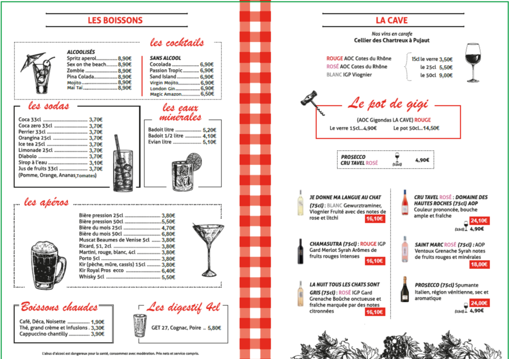 Menus adaptés aux familles avec menu enfant gratuit (-5 ans), et des formules accessibles pour les groupes.